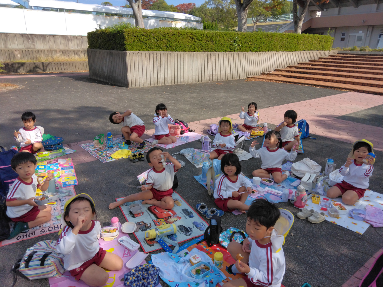 お天気にも恵まれ、遠足日和の今日、あひる組さんとひよこ組さんは遠足に行きました。