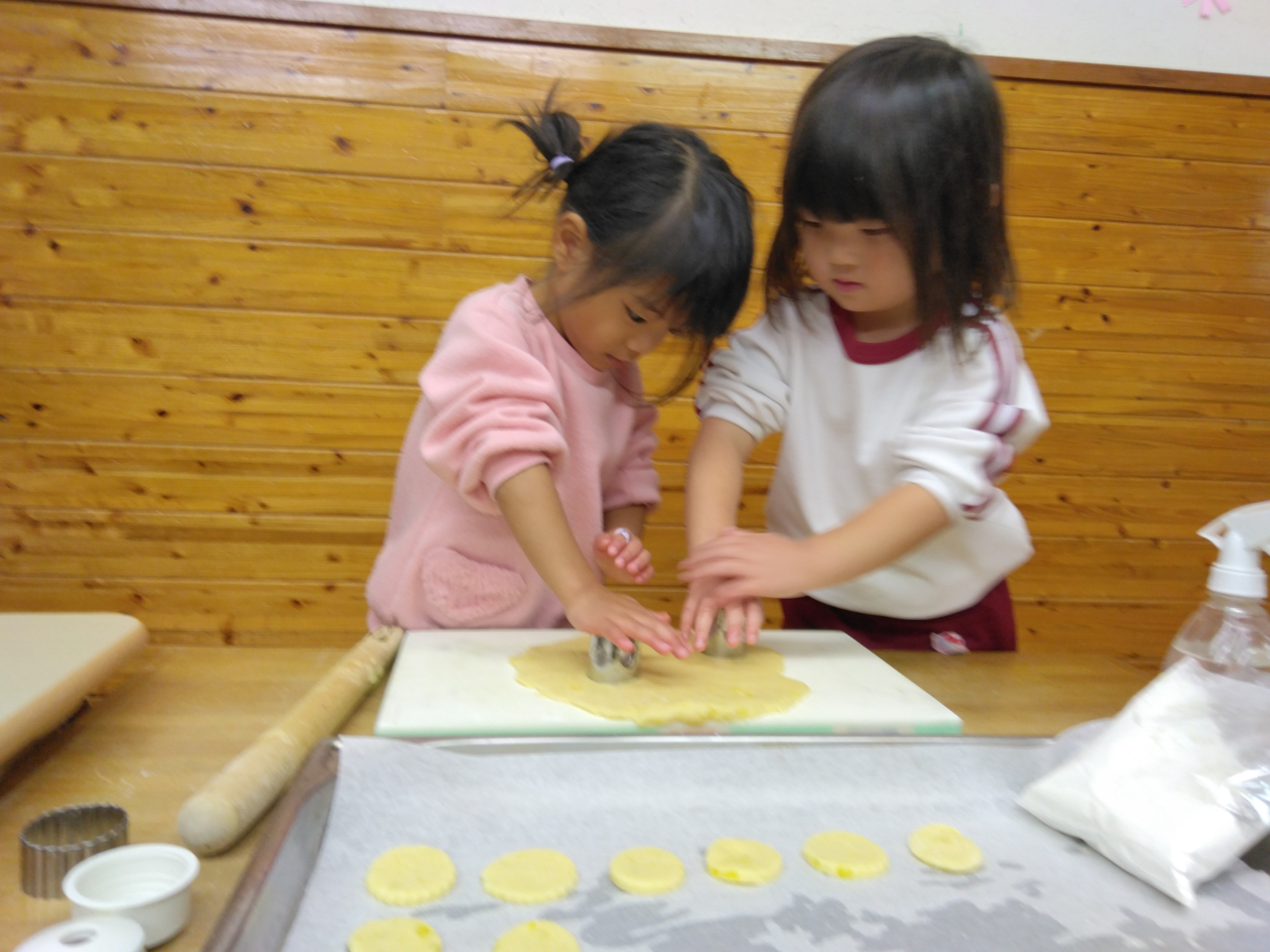 あとは給食の先生に焼いてもらい、給食の後、クッキーパーティー