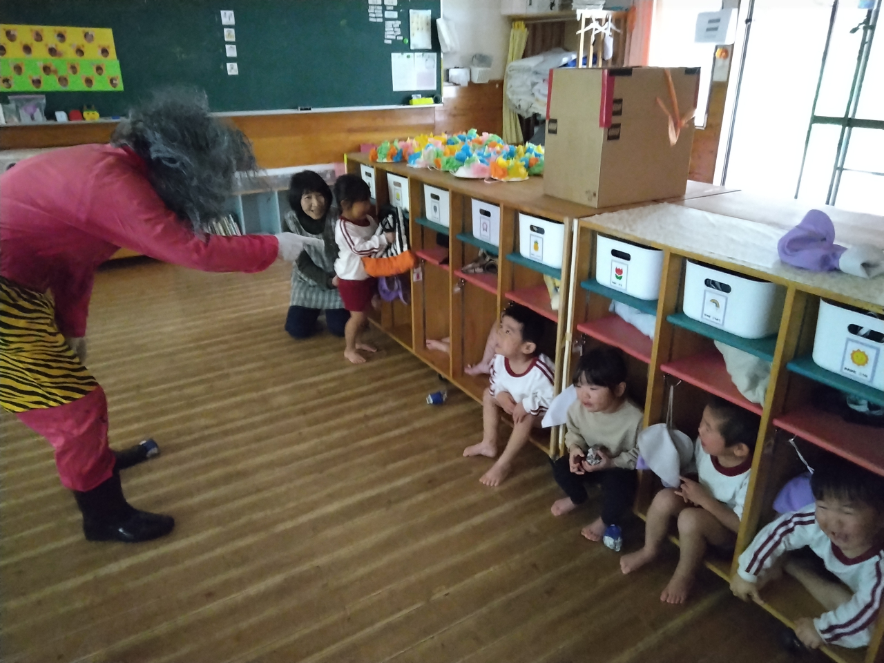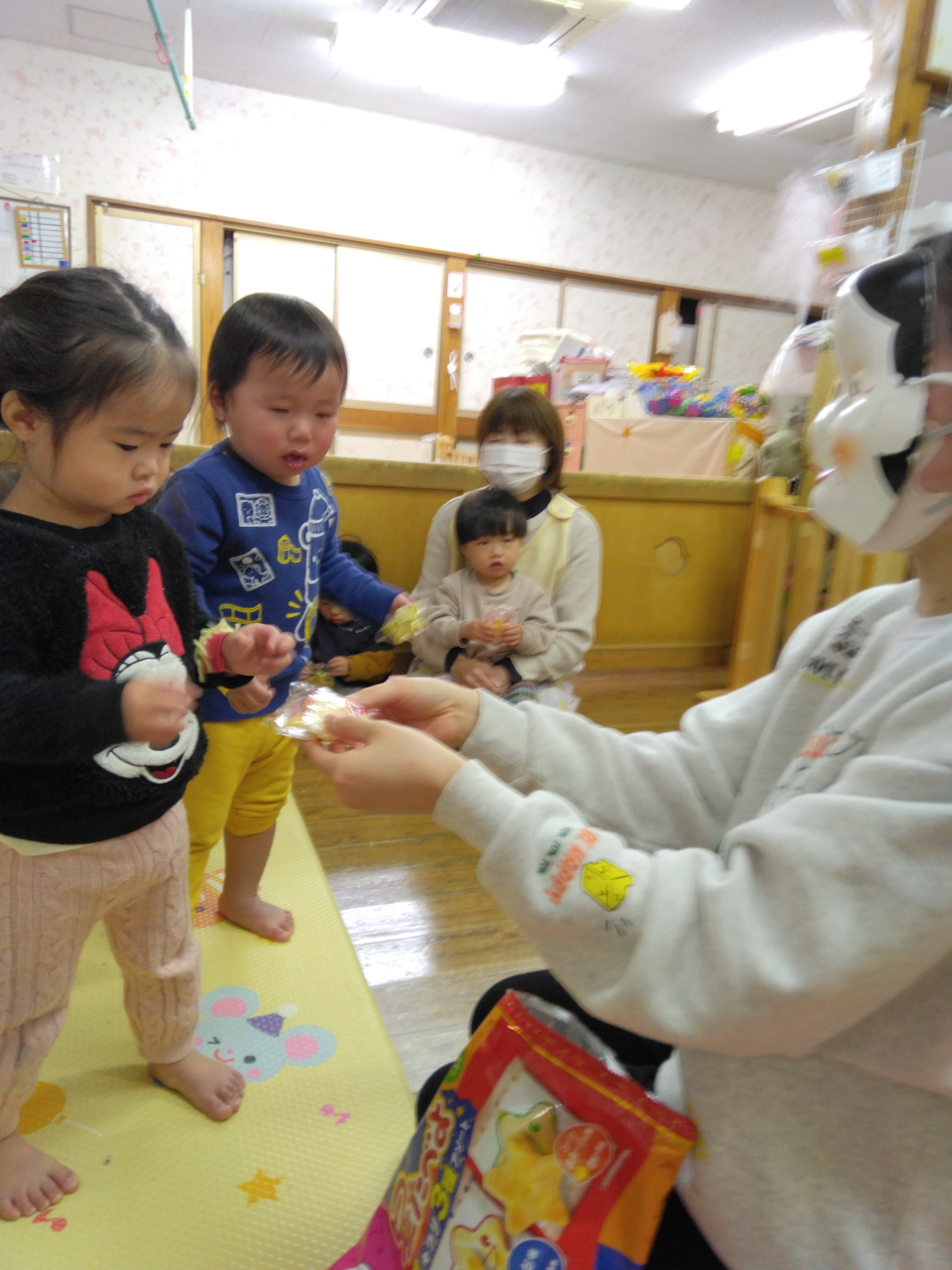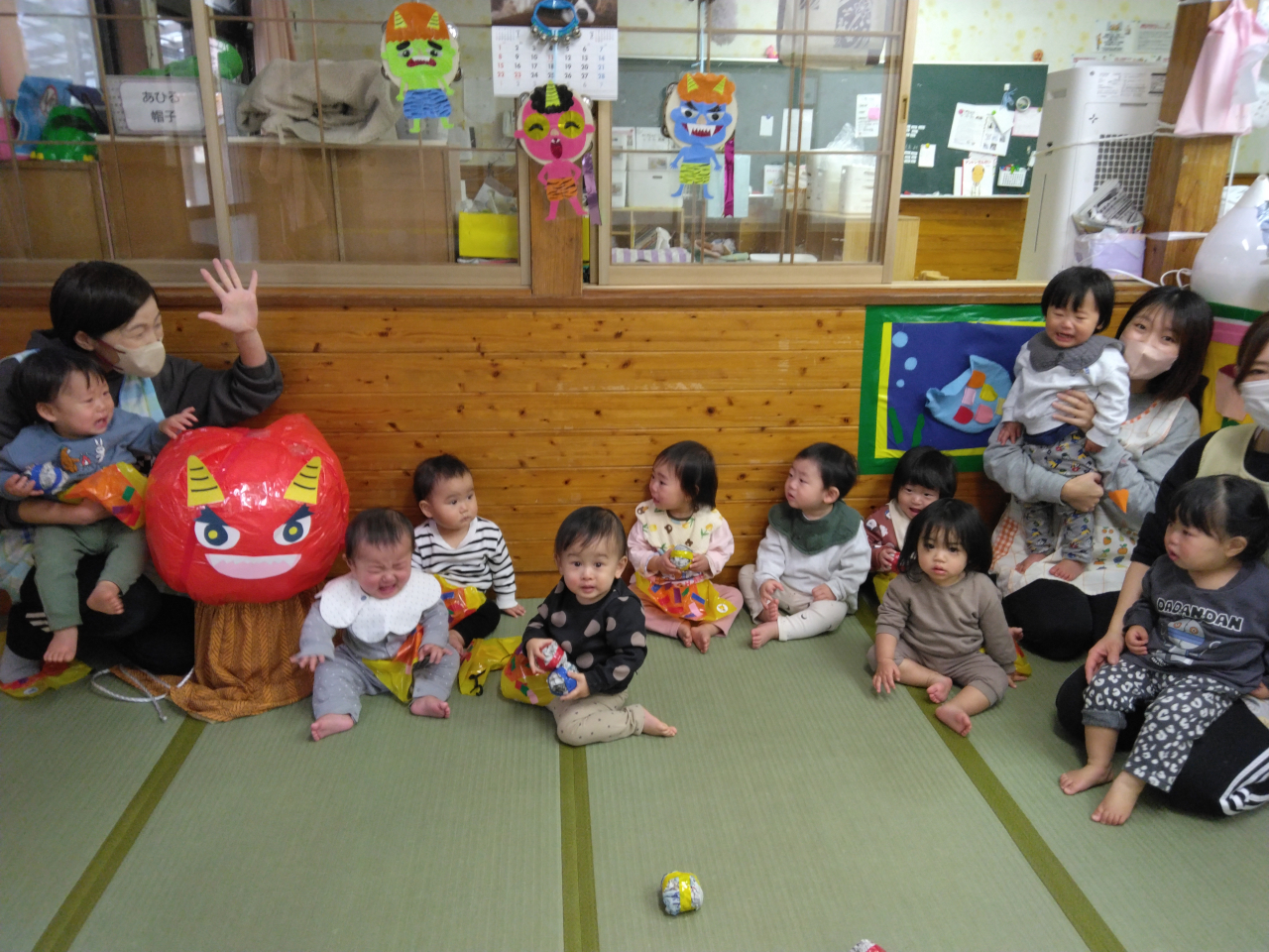 」と逞しく鬼を退治してくれました。そんな姿に勇気をもらったお友だちが一緒に頑張ってくれました