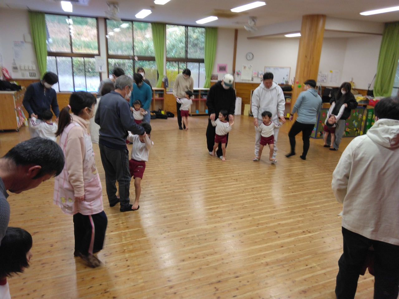 そして先生とさよならタッチしておしまいです。今回は涙の出るお友だちもいなくて、全員で楽しく参加できました