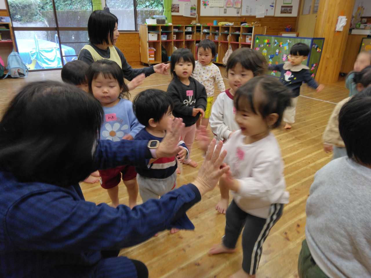そして先生とさよならタッチしておしまいです。今回は涙の出るお友だちもいなくて、全員で楽しく参加できました