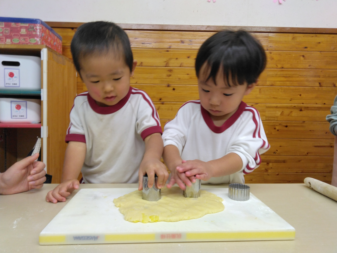 そしてその生地を薄くのばして型抜きします。ここでまたみんなの出番です
