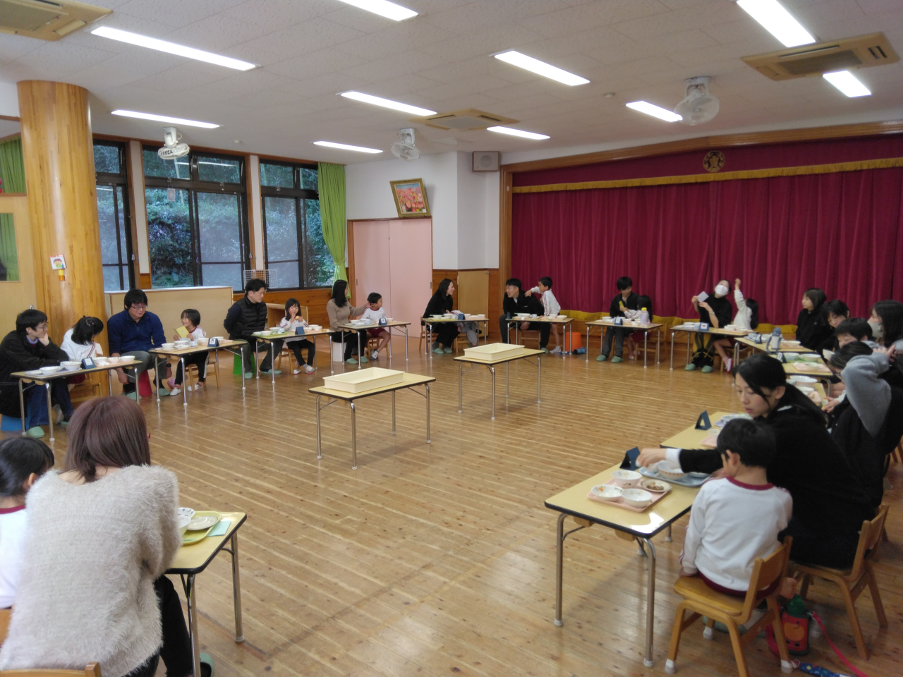 に給食先生がしてくれました!皆で輪になって食べるのって本当に楽しいですね