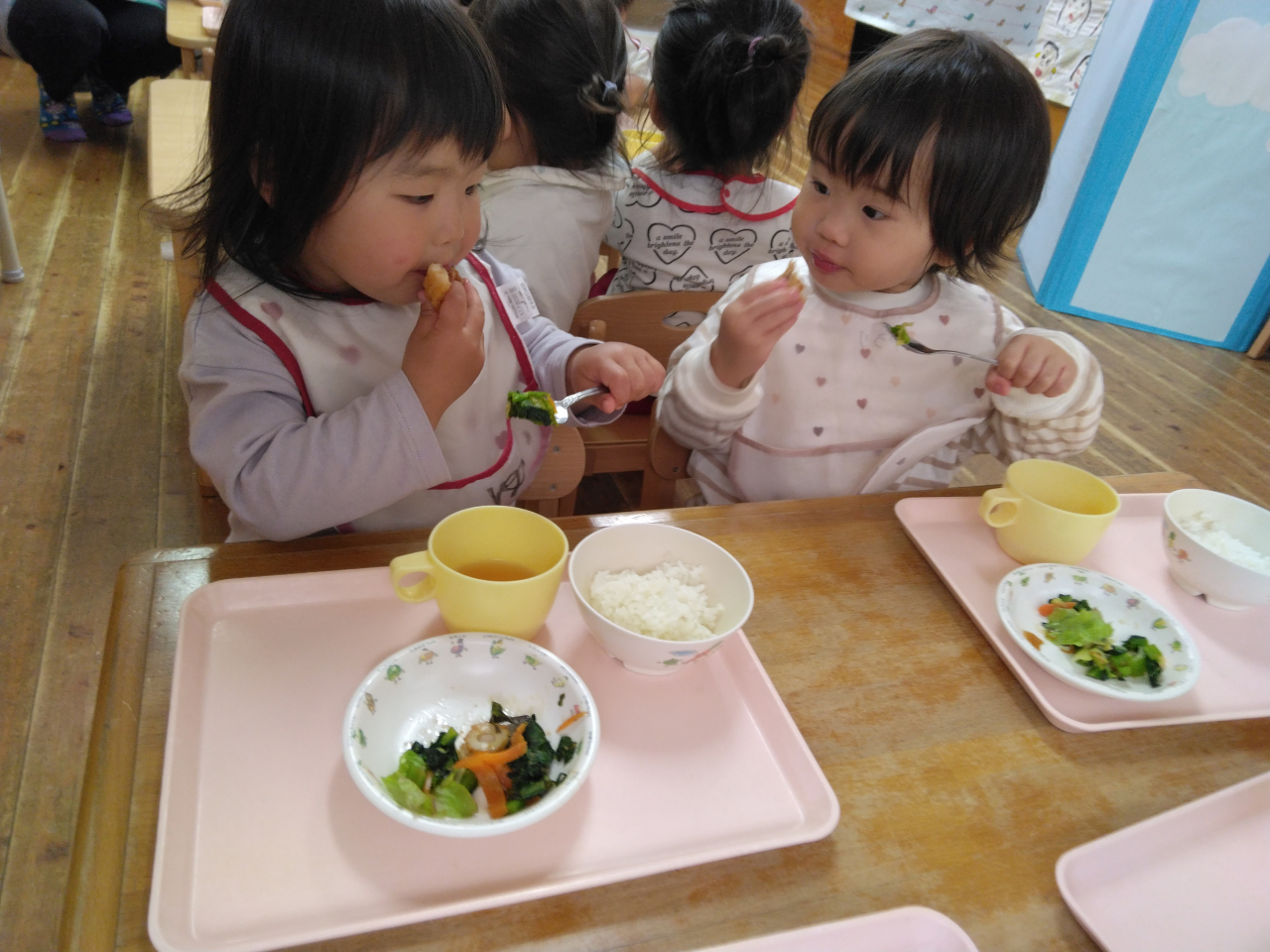 自分たちでちぎった効果もあってか、モグモグ食べてお皿がピカピカになっていました