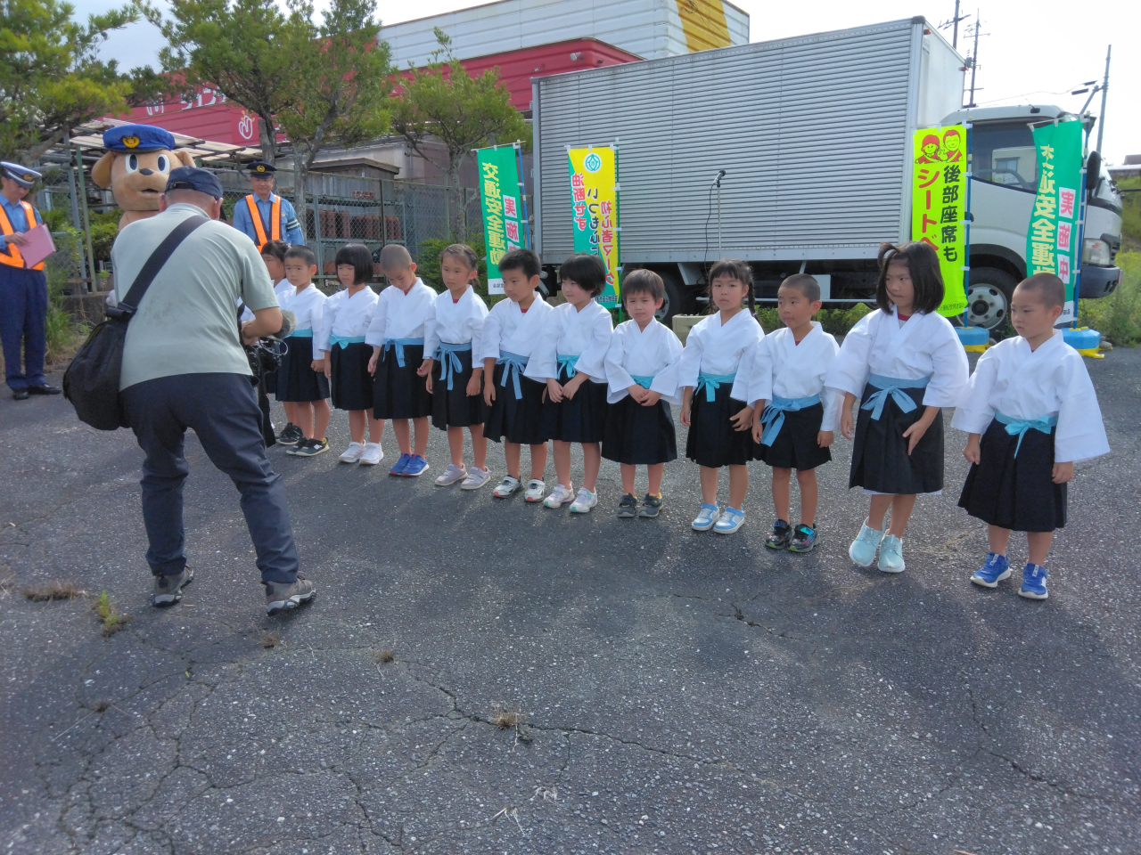 小僧さん「になって秋の交通安全運動に行ってきました今回は「青は進むゾウ 黄色は気をつけるゾウ 赤は止まるゾウ 3つのルール守るゾウ」と元気な声でスローガンを発表しましたよ