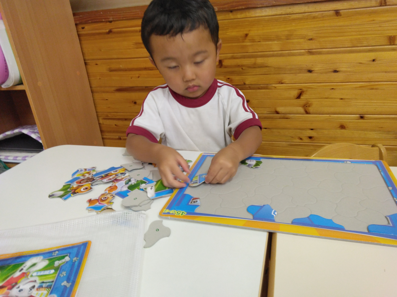 そしてパズルも大人気ピースが多いものにも挑戦し、完成すると大満足の表情です