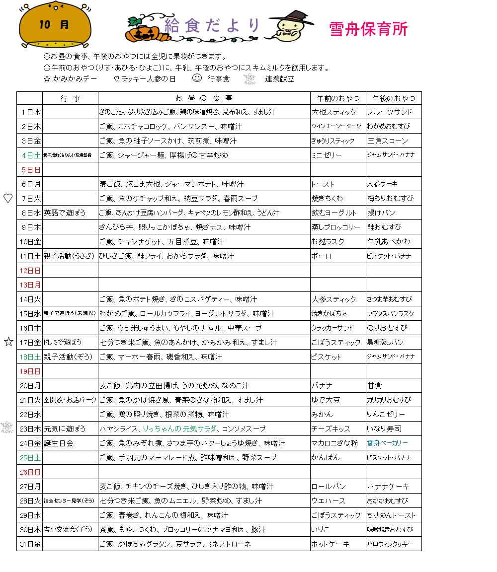 10月の給食だよりをアップしました。