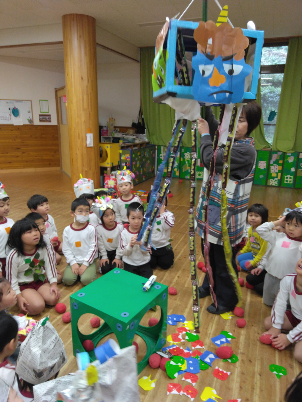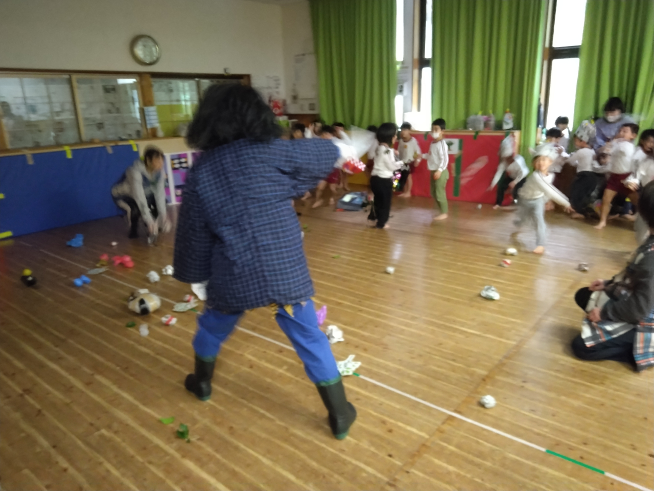 」と逞しく鬼を退治してくれました。そんな姿に勇気をもらったお友だちが一緒に頑張ってくれました