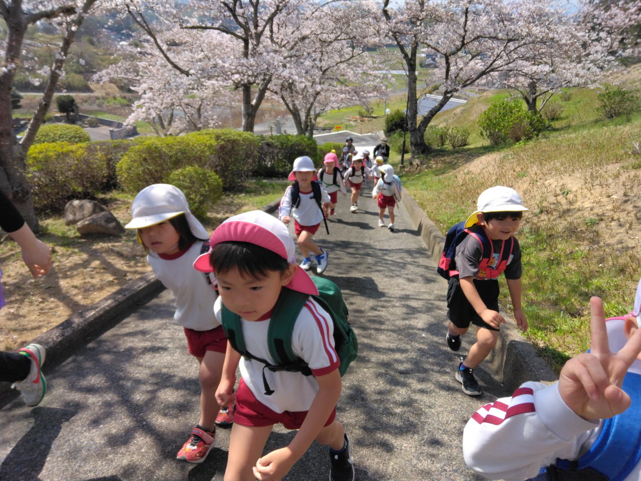 ぞう、きりん組さんは、下本郷の観音様まで散歩に行き、満開の桜の中を歩いたり、走りた~い!とのリクエストもあり、坂道ダッシュもしましたよ