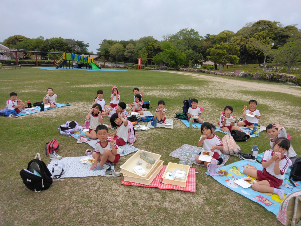 その後は、子どもの広場に行って遊具でたくさん遊んでから、給食の先生が作ってくれたお弁当を食べました♪とっても美味しかったね♡