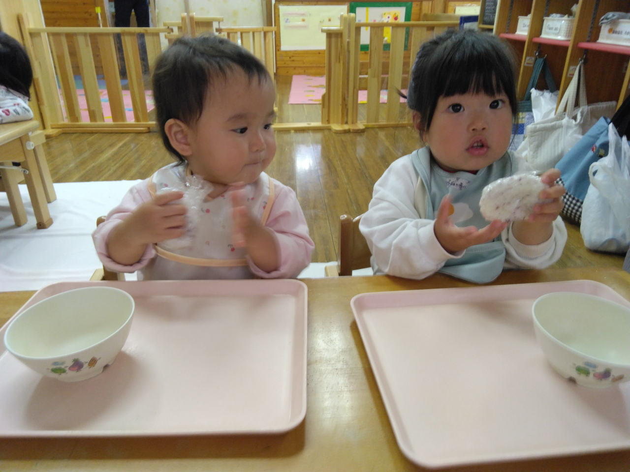 にぎにぎ握ったら、すぐに食べたくなってパクリと大きな口で食べている姿がとっても可愛くて、みんなでニッコリ